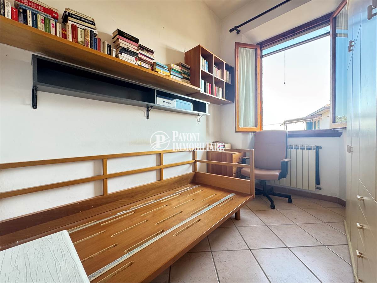 L’immobile presenta una cucina abitabile, due camere matrimoniali, una camerina/studio e un bagno finestrato, raggiungibile salendo pochi gradini.